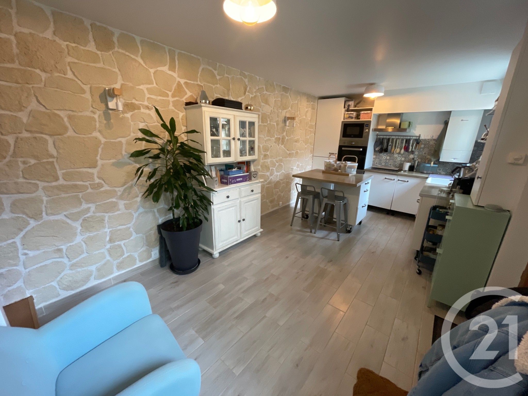 A l'étage, un palier ouvrant sur une chambre et une salle de bains avec wc. Au 2 ème étage, 1 chambre et un wc. 3 box aménagés complète ce bien. Une exclusivité Century 21.